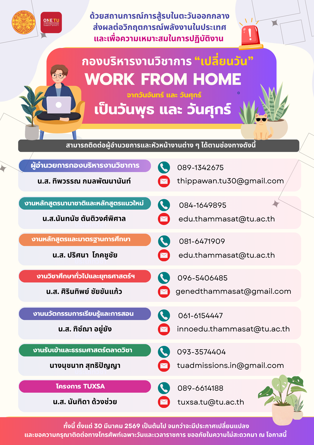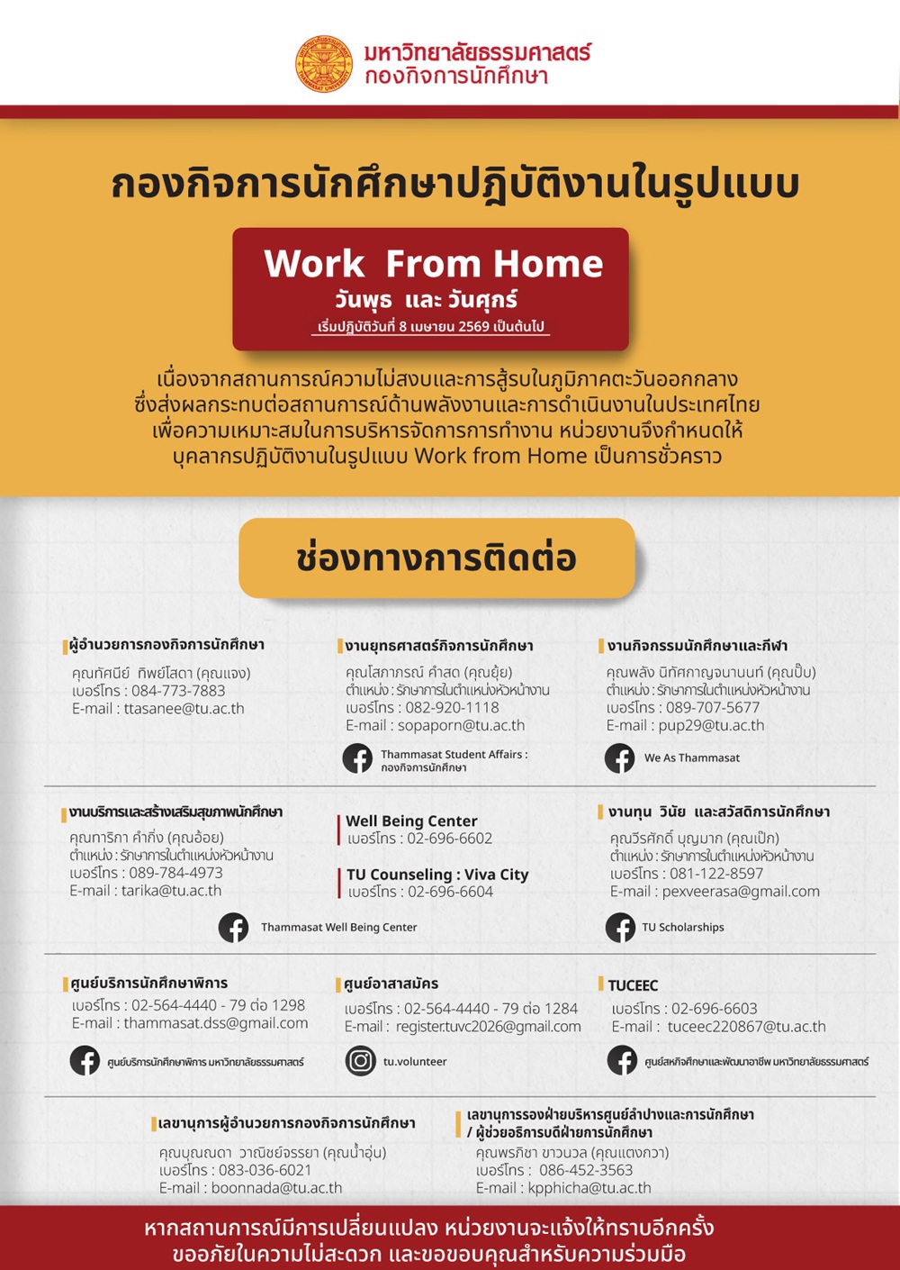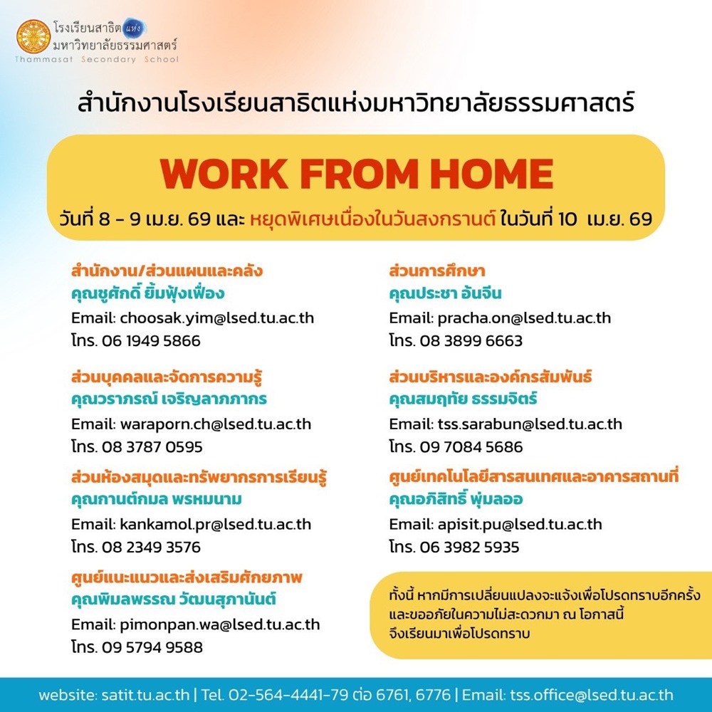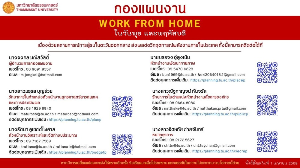 ข้อมูลติดต่อ Work From Home