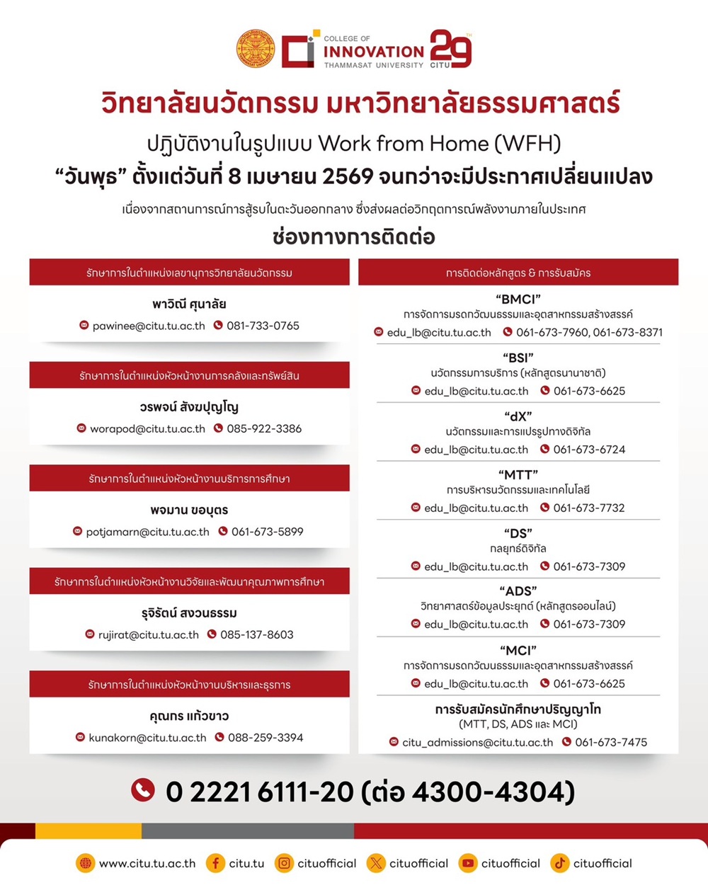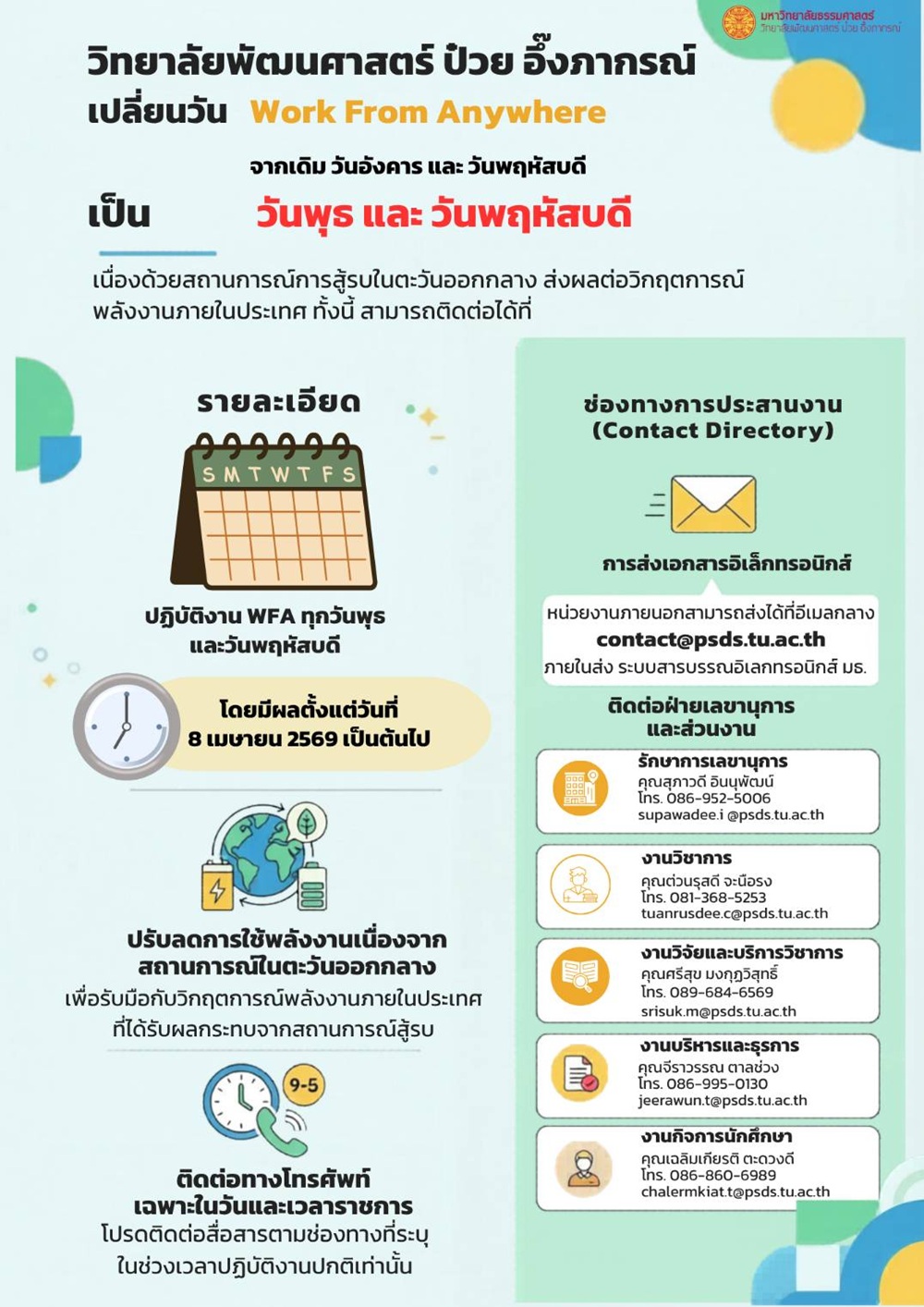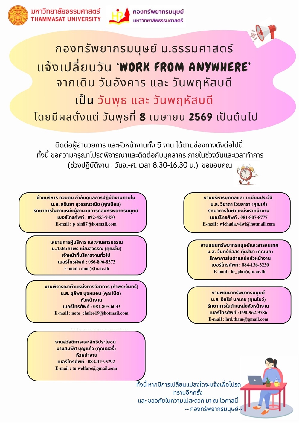 ข้อมูลติดต่อ Work From Home
