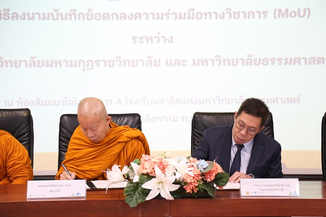 Thammasat University, led by Professor Dr. Supasawad Chardchawarn, Acting Rector, in collaboration with Mahamakut Buddhist University, by the Rector, Phra Dhammawachirajindaporn, Associate Professor Dr., jointly signed a memorandum of understanding to develop academic aspects, curriculum development, research, and academic service activities for the Demonstration School of Mahamakut Buddhist University at the Thammasat University Demonstration School, Thammasat University, Rangsit Campus.