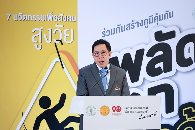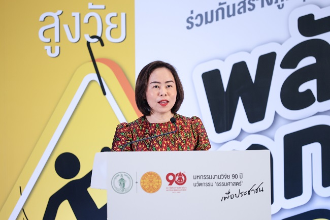 Thammasat University organized the 90th Anniversary Research Fair featuring the launch of 7 Thammasat Innovations for the Elderly Society. The event also included the presentation of the Thammasat Innovation for Society, the “Sit-to-Stand Trainer,” an exercise and rehabilitation device designed to enhance lower limb strength and reduce the risk of falls among the elderly. The device was delivered to the Bangkok Metropolitan Administration (BMA) by Professor Dr. Supasawad Chardchawarn, Acting Rector of Thammasat University, with Assoc. Prof. Dr. Tavida Kamolvej, Deputy Governor of Bangkok, receiving the delivery.