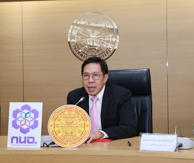 Assoc. Prof. Dr. Veeris Ammarapala, Governor of the Industrial Estate Authority of Thailand, expressed his gratitude to Thammasat University for the privilege to drive as a vital force in pushing forward development and prosperity for the country in the future. He emphasized that human resource development is crucial and must receive cooperation from all parties. There is readiness in terms of knowledge, personnel, and networks, with 68 industrial estates operating in 16 provinces. Therefore, the Industrial Estate Authority of Thailand is prepared to promote, support, and publicize education and operations, especially in terms of internships and various activities to serve the community, as stipulated in the cooperation agreement.