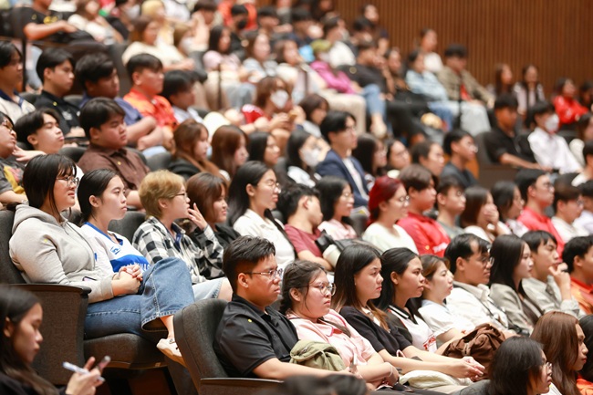 Another discussion, “3 Dilemma Problem: 3 Structural Crises Challenging the New Generation,” included Assoc. Prof. Dr. Dumrong Adulyarittikul (Vice Rector for Academic Affairs, Thammasat University); Asst. Prof. Dr. Parinya Thaewananarumitkul (Faculty of Law, Thammasat University); Mr. Atichan Chingchawano (automotive expert, “Spin 9” YouTube owner); Dr. Tany Thanayawan (pulmonary medical expert, “Doctor Tany” YouTube owner); and Mr. Jaruwat Laohawisit (Executive Director, Pet Protect Food Co., Ltd.). The event drew a large audience of students, faculty, and staff.