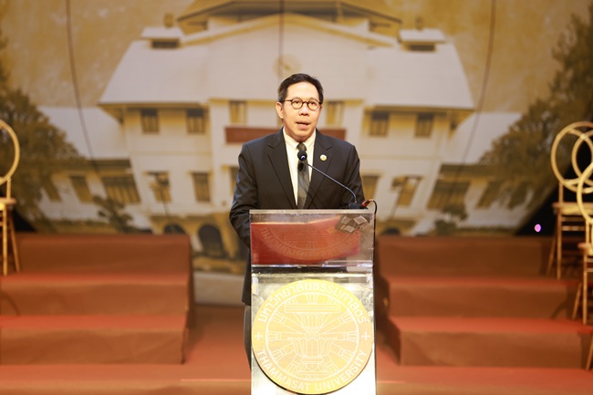 Professor Dr. Supasawad Chardchawarn, Rector of Thammasat University, stated that in the past year, it has been a great source of pride to witness faculty and researchers producing outstanding work that concretely addresses societal needs. Innovations address infectious diseases, agriculture, and public health across all ages. These successes, recognized by prestigious domestic and international awards, strengthen our knowledge and capability, confirming our goal of societal improvement. “Research and innovation are considered vital assets and indicators that reflect the progress of the university towards being recognized as a leading institution both regionally and internationally. Today’s event is organized to honor and uplift the spirits of all faculty and researchers. I sincerely hope that all of you will join in conveying inspiration to the new generation of researchers, in order to continue the mission of creating a better society and guiding Thammasat University towards becoming a leading institution of the future,” Prof. Dr. Supasawad stated.