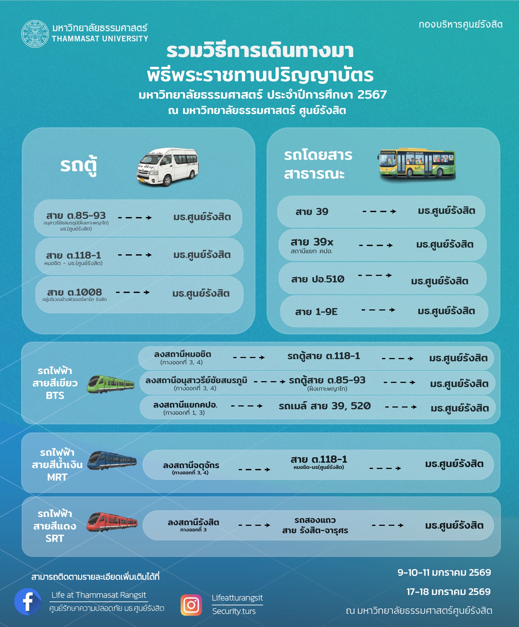 🔹 วิธีการเดินทางมามหาวิทยาลัยธรรมศาสตร์ ศูนย์รังสิต