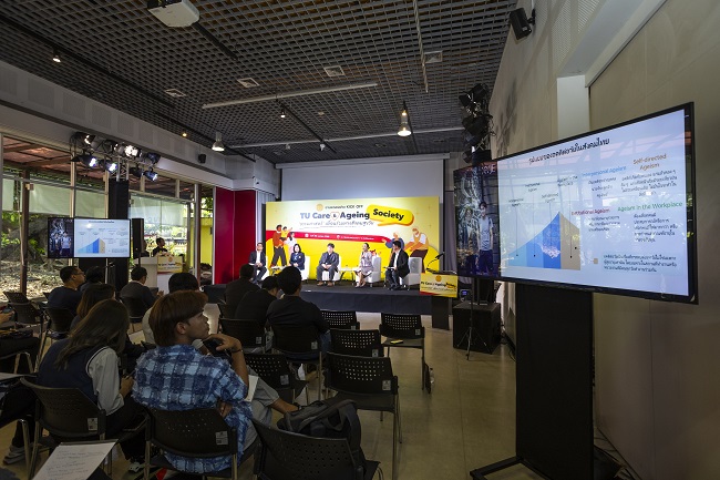 มหาวิทยาลัยธรรมศาสตร์ (มธ.) จัดงานแถลงข่าว KICK OFF โครงการ TU Care & Ageing Society ‘ธรรมศาสตร์’ เพื่อนร่วมทางสังคมสูงวัย เมื่อวันที่ 30 เม.ย. 2568 ประกาศความพร้อมที่จะเป็นส่วนหนึ่งในการดูแลประชาชนและรับใช้สังคมท่ามกลางสถานการณ์ความท้าทายสังคมสูงวัย โดยภายในงานมีการจัดเวทีเสวนา Talk & Share: TU Care & Ageing Society ซึ่งมี 4 นักวิชาการธรรมศาสตร์ร่วมให้มุมมองถึงสถานการณ์ และแนวทางที่มหาวิทยาลัยธรรมศาสตร์ จะเป็นส่วนหนึ่งในการรับมือกับสังคมผู้สูงวัยในประเทศไทย
