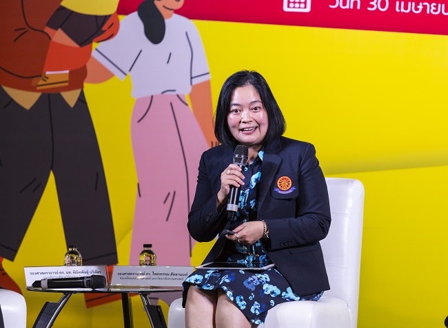 ด้าน รศ. ดร.ม.ล.พินิตพันธุ์ บริพัตร รองอธิการบดีฝ่ายวิจัยและนวัตกรรม มหาวิทยาลัยธรรมศาสตร์ เปิดเผยว่า บทบาทของมหาวิทยาลัยธรรมศาสตร์ ในการสนับสนุนทางด้านวิชาการ เพื่อขับเคลื่อนเรื่องสังคมผู้สูงวัย คือการเป็นฟันเฟืองเล็ก ๆ ในการเชื่อมโยงทั้งแหล่งทุนภายในและภายนอกให้กับนักวิจัย ซึ่งจุดเด่นของงานวิชาการในการผลักดันและพัฒนาเรื่องสังคมสูงวัยของมหาวิทยาลัยธรรมศาสตร์ที่ผ่านมา จะเห็นได้ว่างานวิจัยจะมีความเป็นสหศาสตร์เป็นอย่างมาก