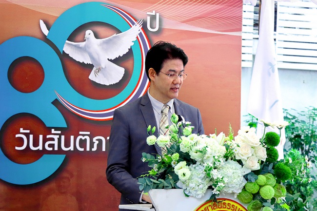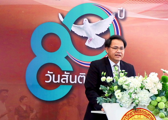 รศ. ดร.ดนุพันธ์ วิสุวรรณ รองอธิการบดีฝ่ายวางแผนและพัฒนาคุณภาพ ผู้รักษาการแทนอธิการบดีมหาวิทยาลัยธรรมศาสตร์ ในฐานะประธานเปิดงานครบรอบ 80 ปี กล่าวใจความตอนหนึ่งว่า แม้วันสันติภาพไทย อันเป็นวันสิ้นสุดสงครามโลกครั้งที่ 2 ในประเทศไทย จะล่วงเลยมาถึง 80 ปีแล้ว แต่ปัญหาอันเกี่ยวเนื่องกับสันติภาพและความรุนแรงยังเป็นสิ่งร่วมสมัย ซึ่งยังคงเผชิญอยู่ในปัจจุบัน ในวาระเช่นนี้ ทำให้นึกถึงสิ่งซึ่งผู้ประศาสน์การ ปรีดี พนมยงค์ ได้ลงมือทำให้ไว้ในหน้าประวัติศาสตร์การเมืองไทย โดยเฉพาะการเป็นหัวหน้าขบวนการเสรีไทยที่ทำงานเพื่อให้นานาประเทศรับรองเอกราชของไทยหลังสงคราม และยืนยันว่าไทยยังเป็นประเทศที่มีเอกราชสมบูรณ์