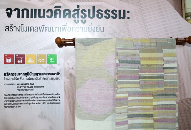 อนึ่ง ปัจจุบันผลงานเครื่องแต่งกายจากการวิจัยดังกล่าว ถูกจัดแสดงรวมกับอีกกว่า 40 ผลงานจากหลากหลายคณะสายสังคมศาสตร์ และมนุษยศาสตร์ ในงานนิทรรศการหมุนเวียนเพื่อความยั่งยืน (SDGs) Phase 2 ในธีม “เมืองและชุมชนยั่งยืน” ที่จัดขึ้นตั้งแต่เดือน พ.ย. 2568 – ก.พ. 2569 ณ SDG Lab อุทยานการเรียนรู้ป๋วย 100 ปี มหาวิทยาลัยธรรมศาสตร์ ศูนย์รังสิต ซึ่งสามารถเข้าชมนิทรรศการได้ทุกวันอังคาร และวันพฤหัสบดี ตั้งแต่ 10.00 – 16.00 น. โดยผู้ที่สนใจสามารถจองเพื่อเข้าชมนิทรรศการได้ที่ https://forms.gle/n9a4z3HYqzskLeLh8