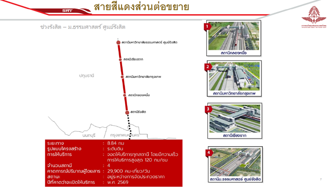 สำหรับความคืบหน้าในการดำเนินโครงการรถไฟชานเมืองสายสีแดงเข้ม ส่วนต่อขยาย ช่วงรังสิต – มหาวิทยาลัยธรรมศาสตร์ ศูนย์รังสิต ในขณะนี้กระทรวงคมนาคมได้มอบหมายให้การรถไฟแห่งประเทศไทย เร่งรัดดำเนินการ ซึ่งเล่มรายงานเรียบร้อยสมบูรณ์แล้ว คาดว่าจะเสนอเรื่องให้ที่ประชุมคณะรัฐมนตรีเห็นชอบในช่วงต้นเดือนกุมภาพันธ์ 2566 นี้