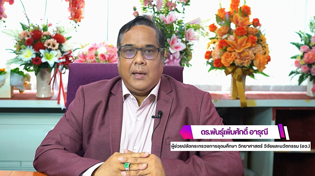 ด้าน ดร.พันธุ์เพิ่มศักดิ์ อารุณี ผู้ช่วยปลัดกระทรวงการอุดมศึกษา วิทยาศาสตร์ วิจัยและนวัตกรรม (อว.) กล่าวในพิธีเปิดว่า โลกปัจจุบันกำลังเผชิญการเปลี่ยนแปลงอย่างรวดเร็วและซับซ้อนจากอิทธิพลของโลกาภิวัตน์และเทคโนโลยี โดยเฉพาะ AI ซึ่งมีบทบาทสำคัญต่อการพัฒนาเศรษฐกิจ สังคม และการศึกษา กระทรวงฯ จึงได้ผลักดันนโยบาย “AI University” เพื่อให้ผู้เรียนมีพื้นฐานด้าน AI พร้อมจัดตั้งศูนย์ส่งเสริม AI ในทุกสถาบันอุดมศึกษา รวมถึงโครงการ Credit Bank และ Skill Portfolio เพื่อสนับสนุนการเรียนรู้ตลอดชีวิตและการพัฒนาทักษะเพื่อความพร้อมในการทำงาน