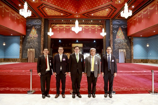 โดยได้รับเกียรติจาก คุณบุญส่ง น้อยโสภณ รองประธานวุฒิสภา คนที่สอง ให้เกียรติเป็นประธานในพิธี ซึ่งมีผู้เข้าร่วม อาทิ นายบุญสงค์ ทองอินทร์ ผู้อํานวยการสํานักวิชาการ คุณแก้วเกศร์ ถาวรพันธ์ ที่ปรึกษาด้านระบบงานนิติบัญญัติ สำนักงานเลขาธิการวุฒิสภา รศ. ดร.ม.ล.พินิตพันธุ์ บริพัตร รองอธิการบดีฝ่ายวิจัยและนวัตกรรม และ รศ. ดร.สุปรีดี ฤทธิรงค์ รองอธิการบดีฝ่ายวิเทศสัมพันธ์ เมื่อวันที่ 26 กันยายน 2568 ณ อาคารรัฐสภา กรุงเทพฯ