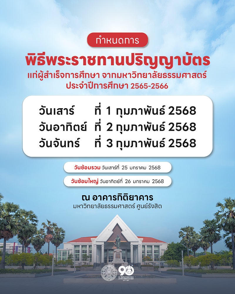 พิธีพระราชทานปริญญาบัตรแก่ผู้สำเร็จการศึกษาจากมหาวิทยาลัยธรรมศาสตร์ ประจำปีการศึกษา 2565-2566
