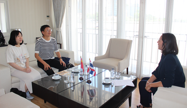 โดยหารือเรื่องการขยายโอกาสสำหรับนักศึกษาธรรมศาสตร์ในการเข้าฝึกงานและสมัครงานในบริษัทจากประเทศจีนที่อยู่ในประเทศไทย และทั้งสองฝ่ายมีความเห็นที่ตรงกันในการสนับสนุนการจัดงานประชาสัมพันธ์ข้อมูล หรือ “information session day” เพื่อประชาสัมพันธ์และให้ข้อมูลเกี่ยวกับตำแหน่งงาน โอกาสการสมัครและเข้าทำงาน โดยเจ้าหน้าที่ฝ่ายทรัพยากรบุคคลของบริษัทสัญชาติจีนในไทย รวมถึงการเชิญบริษัทเหล่านั้นเข้าร่วมงาน Thammasat Open House ด้วย