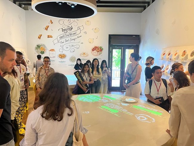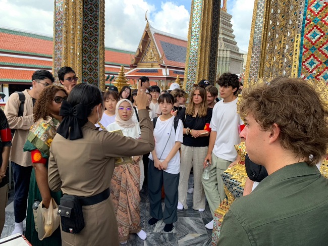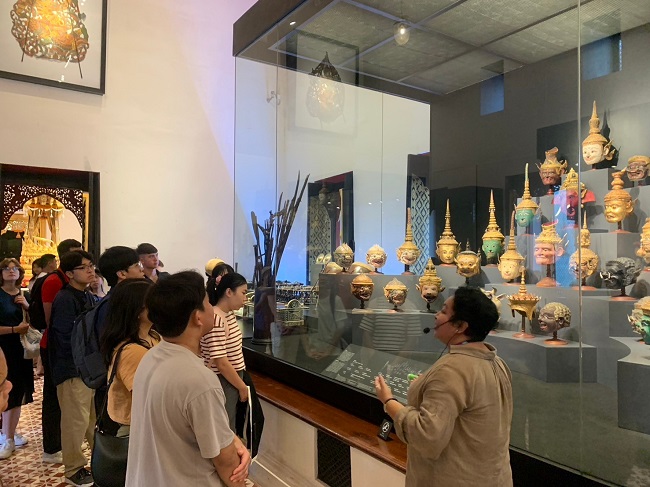 During a visit to the Emerald Buddha Temple and Grand Palace, International students were introduced to the history of Thai architecture, mural painting and stucco arts. At Museum Siam, they were treated to a tour of the contemporary “Modern Museum” through modern technology and creative activities – historical, architectural, traditional, culinary and clothing perspectives. On 7 and 8 August 2024 at the National Museum Bangkok, international students learned about Thai history, the evolution of archeological arts in Thailand as well as viewing the historical collection of a variety of artistic, cultural and ethnological objects.