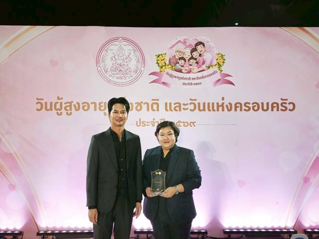 รศ. ดร.ชุมเขต แสวงเจริญ และอาจารย์ณัฐวดี เตมียกุล ผู้บริหารหน่วยวิจัยและออกแบบเพื่อคนทั้งมวล คณะสถาปัตยกรรมศาสตร์และการผังเมือง มหาวิทยาลัยธรรมศาสตร์ พร้อมด้วยคณะเจ้าหน้าที่ เข้ารับรางวัลโล่ประกาศเกียรติคุณ “องค์กรเครือข่ายดีเด่น ด้านการส่งเสริมและสนับสนุนการขับเคลื่อนงานเครือข่ายด้านผู้สูงอายุ ระดับดีเด่นพิเศษ” เนื่องในวันผู้สูงอายุแห่งชาติและวันแห่งครอบครัว ประจำปี 2569 จากนายอนุทิน ชาญวีรกูล นายกรัฐมนตรี และรัฐมนตรีว่าการกระทรวงมหาดไทย โดยมีนายกันตพงศ์ รังษีสว่าง ปลัดกระทรวงการพัฒนาสังคมและความมั่นคงของมนุษย์ เป็นผู้แทนมอบรางวัล เมื่อวันพุธที่ 8 เมษายน 2569 ณ ห้องแกรนด์ไดมอนด์ บอลรูม อาคารอิมแพค ฟอรั่ม เมืองทองธานี จังหวัดนนทบุรี