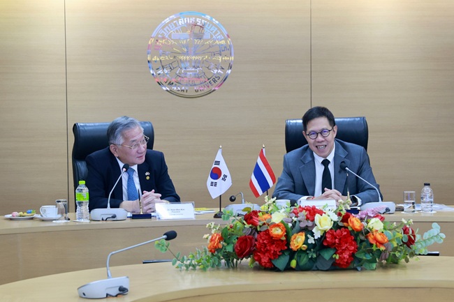On 20 January 2026, Professor Dr. Supasawad Chardchawarn, Rector of Thammasat University, welcomed Dr. Kim Yoon-Bae, President of Cheongju University of the Republic of Korea, for an official meeting at Thammasat’s Rangsit campus.