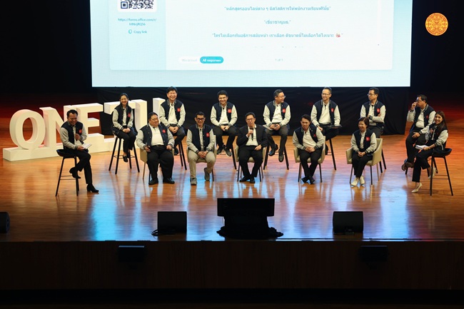 เมื่อวันที่ 22 ธ.ค. 2568 มหาวิทยาลัยธรรมศาสตร์ (มธ.) จัดงาน TOWNHALL MEETING ครั้งที่ 4 “Share to Change : Now and Next TU” เพื่อนำเสนอผลงานในรอบการบริหาร 1 ปีและก้าวต่อไป “WHAT’S HAPPENED NOW AND GET READY FOR NEXT CHAPTER !” โดย ศ. ดร.ศุภสวัสดิ์ ชัชวาลย์ อธิการบดี มธ. และคณะผู้บริหาร มธ. ณ อาคารอุทยานการเรียนรู้ป๋วย 100 ปี มหาวิทยาลัยธรรมศาสตร์ ศูนย์รังสิต รวมถึงการนำเสนอการผสานค่านิยม ONE TU ไปปรับใช้จริงของหน่วยงานในมหาวิทยาลัย เพื่อขับเคลื่อนการพัฒนามหาวิทยาลัย “SHARE TO CHANGE-5 MINS PRESENTATON” โดยตัวแทนประชาคม มธ. 6 กลุ่ม ได้แก่ กลุ่มคณะ/วิทยาลัย/สถาบัน สายสังคมศาสตร์ กลุ่มคณะ/วิทยาลัย/สถาบัน สายมนุษยศาสตร์ กลุ่มคณะ/วิทยาลัย/สถาบัน สายวิทยาศาสตร์และเทคโนโลยี กลุ่มสำนักงาน/สถาบัน และกลุ่มสำนักงานบริการและสนับสนุนการบริหารมหาวิทยาลัย