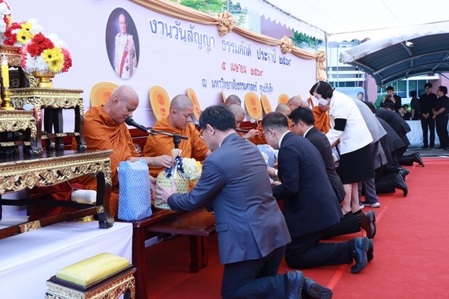 มหาวิทยาลัยธรรมศาสตร์ จัดงาน “วันสัญญา ธรรมศักดิ์ ประจำปี 2569” โดยมี ศ. พิเศษ อรรถนิติ ดิษฐอำนาจ องคมนตรี พร้อมด้วย ศ. ดร.สุรพล นิติไกรพจน์ นายกสภามหาวิทยาลัย ศ. ดร.ศุภสวัสดิ์ ชัชวาลย์ อธิการบดีมหาวิทยาลัยธรรมศาสตร์ และหน่วยงานทั้งภายในและภายนอก เข้าร่วมพิธีวางพานพุ่มที่ประดิษฐ์จากเครื่องเขียน อุปกรณ์กีฬา และหนังสือ เมื่อวันที่ 5 เมษายน 2569 ณ ลานอนุสาวรีย์ศาสตราจารย์สัญญา ธรรมศักดิ์ มหาวิทยาลัยธรรมศาสตร์ ศูนย์รังสิต เพื่อนำไปมอบแก่โรงเรียนที่ขาดแคลน