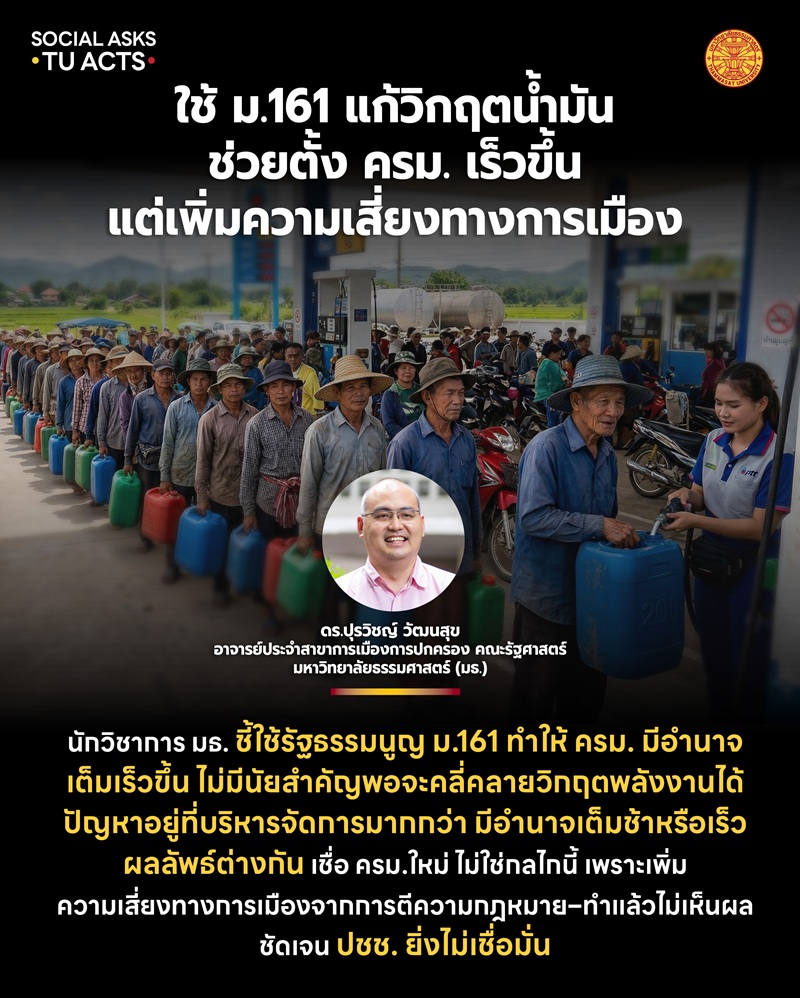 ใช้ ม.161 แก้วิกฤตน้ำมัน ช่วยตั้ง ครม. เร็วขึ้น แต่เพิ่มความเสี่ยงทางการเมือง