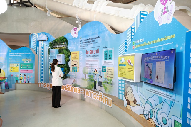 โซนที่ 3 แพลตฟอร์มดิจิทัลและสื่อการเรียนรู้ (Digital Health & Education Platforms) “เชื่อมต่อเทคโนโลยีดิจิทัลสู่การบริการสุขภาพและการเรียนรู้ที่เข้าถึงง่าย” โซนที่ 4 การดูแลทางคลินิกและสุขภาวะสังคม (Clinical Care & Social Well-being) “ยกระดับมาตรฐานการดูแลรักษาควบคู่ความเข้าใจมิติทางสังคมและจิตใจ” และโซนที่ 5 สิ่งแวดล้อมและความยั่งยืน (Environment & Sustainability) “ขับเคลื่อนสังคมคาร์บอนต่ำและสร้างสภาพแวดล้อมที่เอื้อต่อสุขภาวะอย่างยั่งยืน”